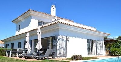 Beautiful four bedroom three bathroom villa with private swimming pool and garden, front line at Nuevo Portil golf and beach village.