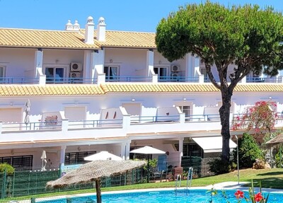 A beautiful three bedroomed townhouse at the Nuevo Portil golf and beach village. The house is built on three levels with spacious terraces or patios at each level offering views of the golf course, gardens and pool.